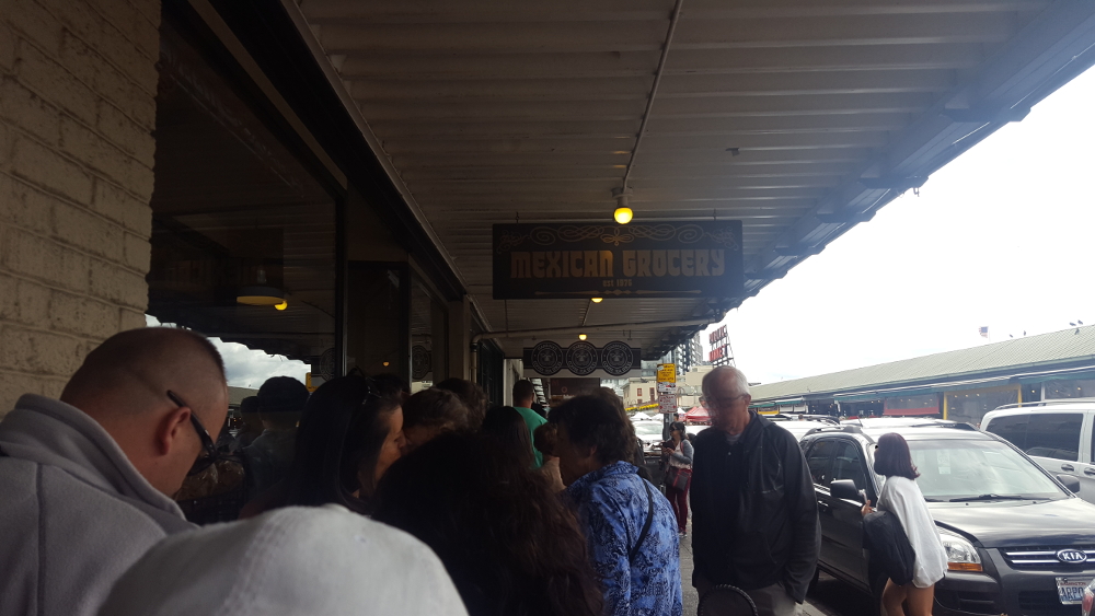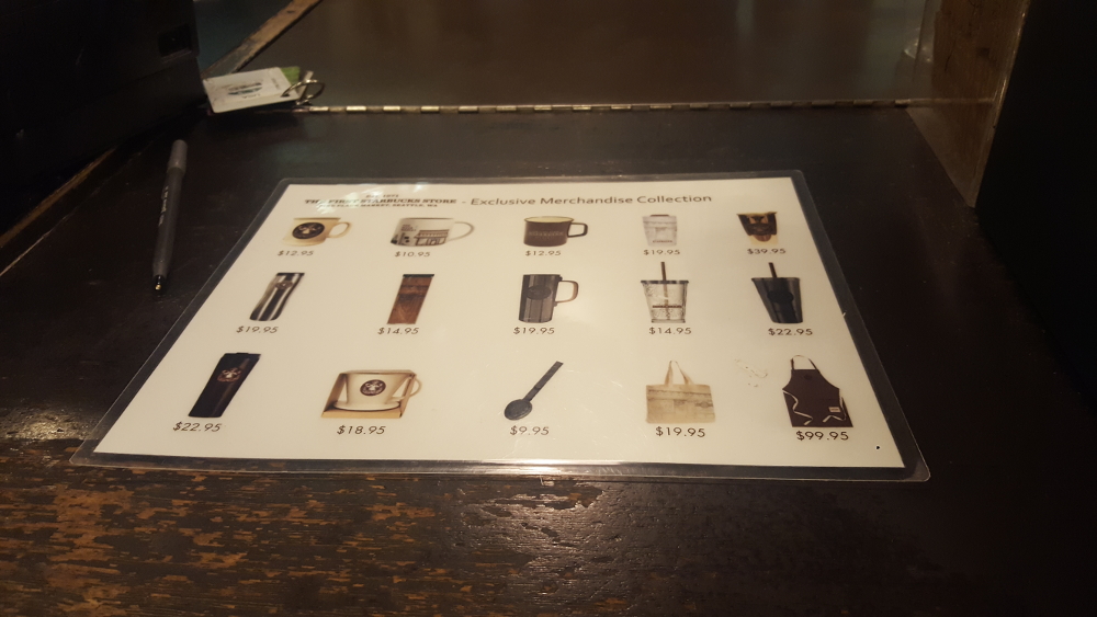 Right off the bat, the first thing I noticed and adored about the original Starbucks is the location. It’s directly across from and facing Pike Place Market, a great place full of small vendors selling everything from fresh produce to fish to handmade jams and jewelry, and both are very near to the water. The surrounding stores are pretty quaint and the street is still cobblestone, the area isn’t built up and fancy or anything; there’s still a very authentic feel to the area. Inside is another story, the Starbucks store itself has been completely modernized and remodeled and looks just like any other Starbucks, albeit a little cramped. And packed.